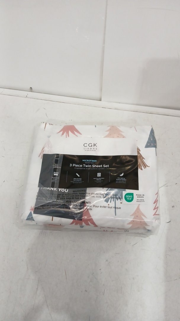 3pc cgk linens holiday christmas tree sheet set - twin - white/trees