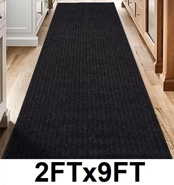 gotohipi indoor/outdoor non-slip runner rug utility carpet - 2ft X 9Ft - black stripe