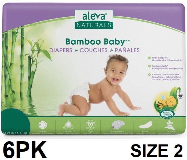 6pk aleva Aleva Naturals Bamboo Baby Diapers - Size 2 - 30 per pack ( 180 total)