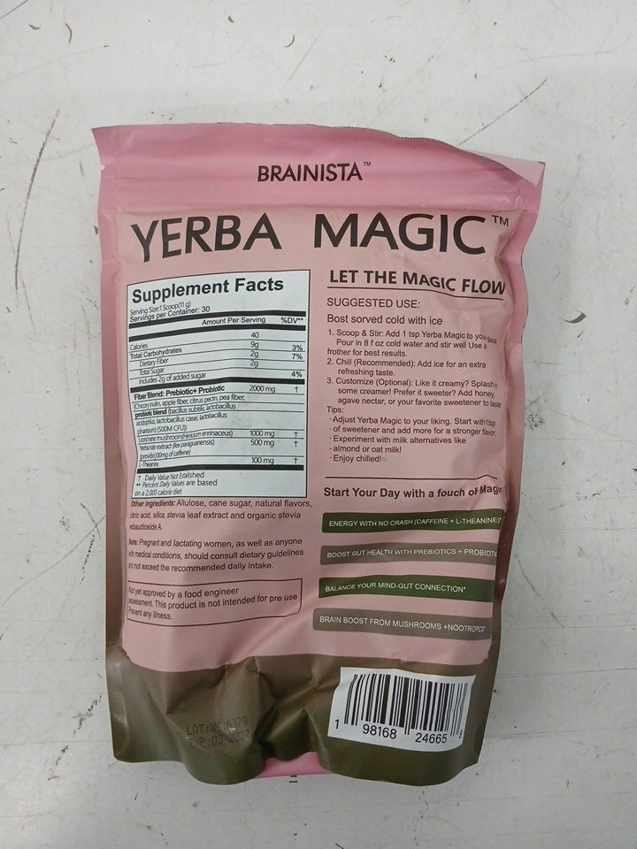 yerba magic instant powder mate tea super drink with nootropics, prebiotics & probiotics - natural caffeine - strawberry matcha - 30 servings