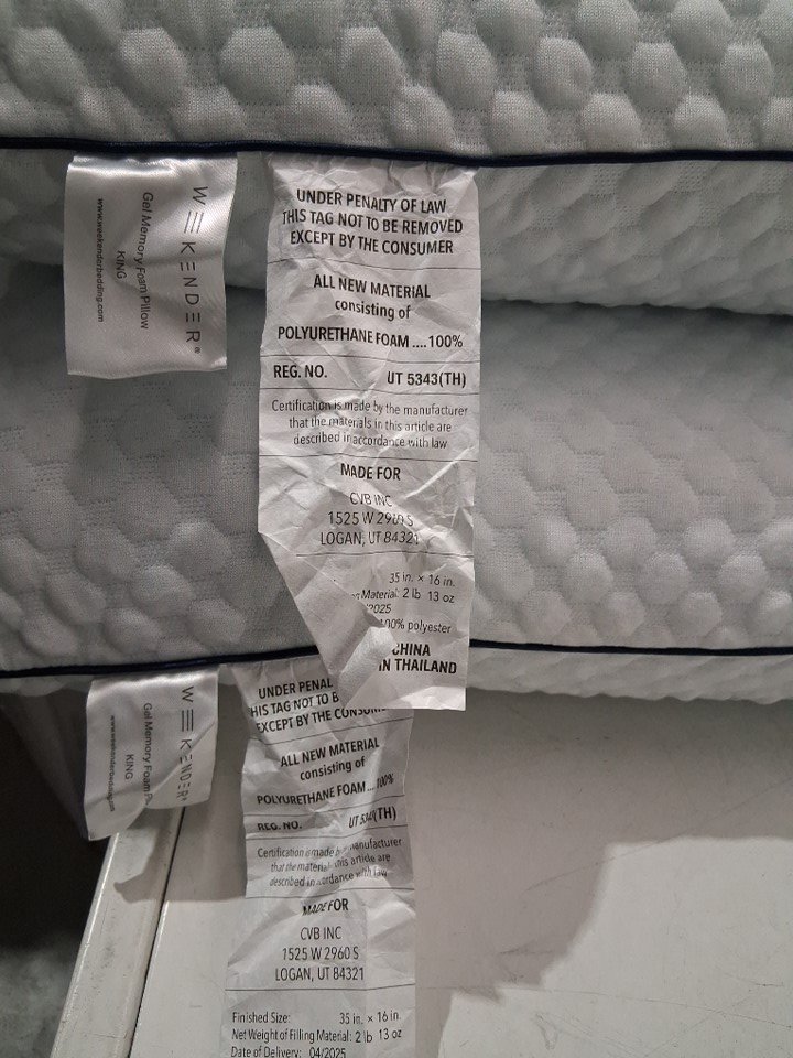 2PK WEEKENDER GEL MEMORY FOAM BED PILLOW - KING 35" x 16" - WHITE