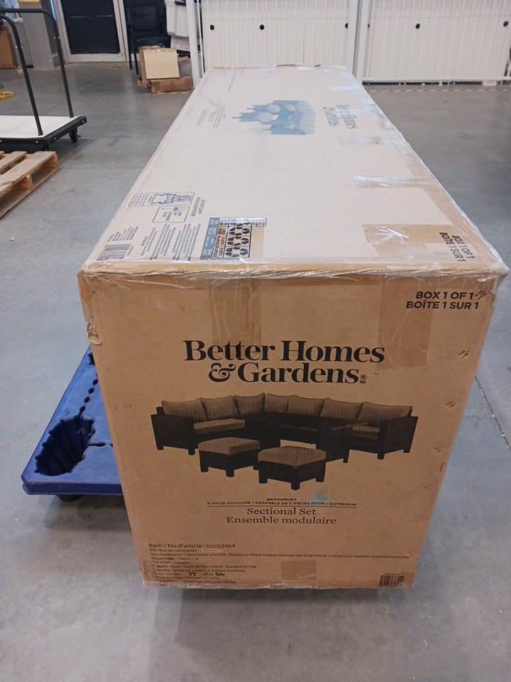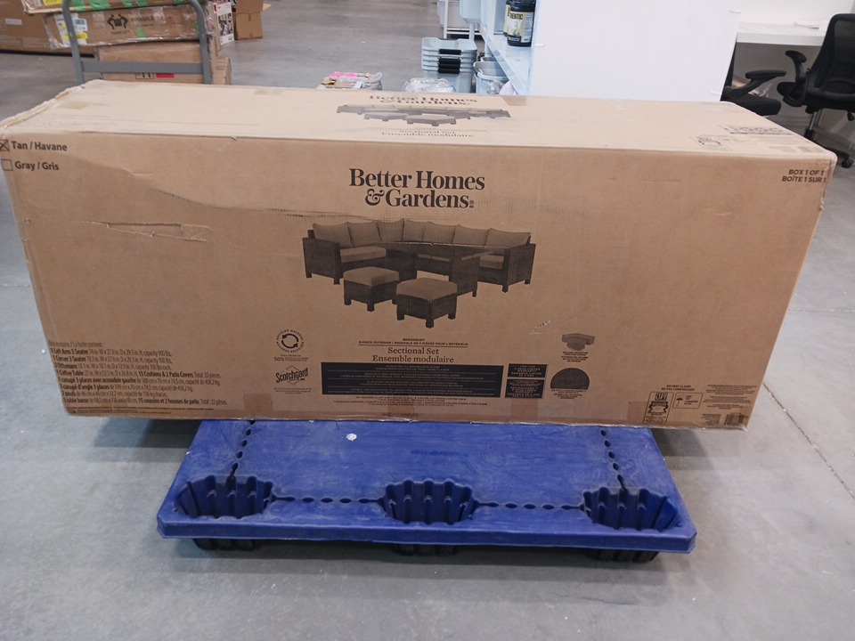 5PC Better Homes & Gardens Brookbury Patio Outdoor Sectional Set Includes Left-Arm Sofa, Right-Arm Sofa, Corner Section, Ottoman, and Tempered-Glass Coffee Table with All-Weather Handwoven Wicker and Thick Cushions - Tan Brown (Model: 5030346)