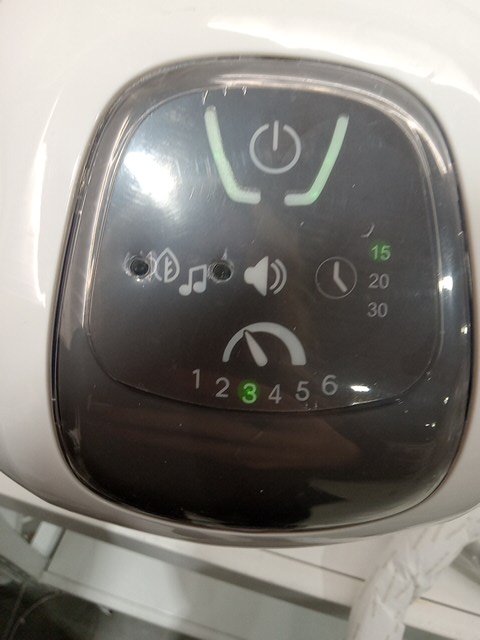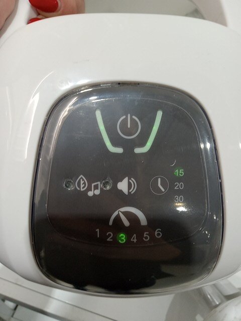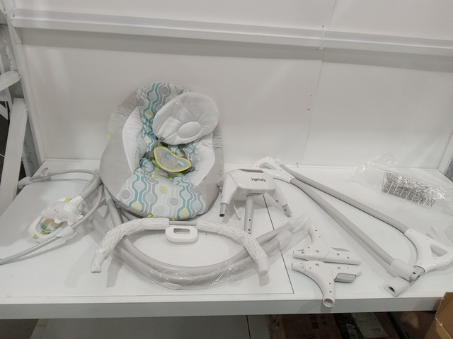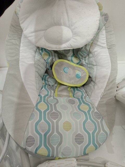 there is some black scuff marks on the legs of the swing. there is also some mark on the top where the power button and other modes are. tested for power only.