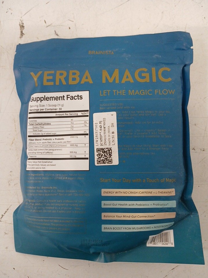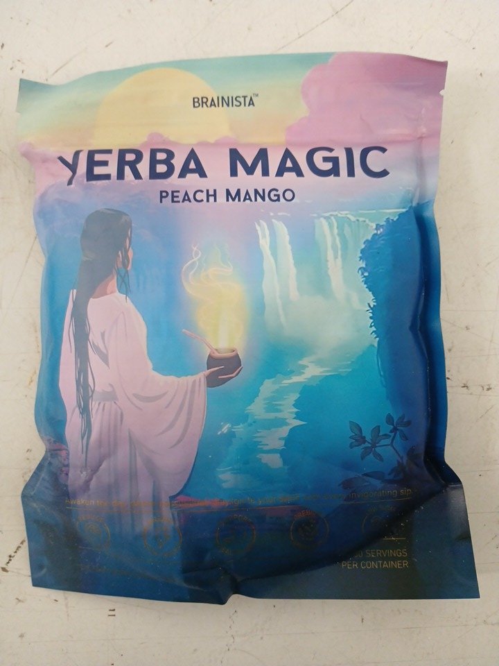 yerba magic instant powder mate tea super drink with nootropics, prebiotics & probiotics - natural caffeine - peach mango - 30 servings