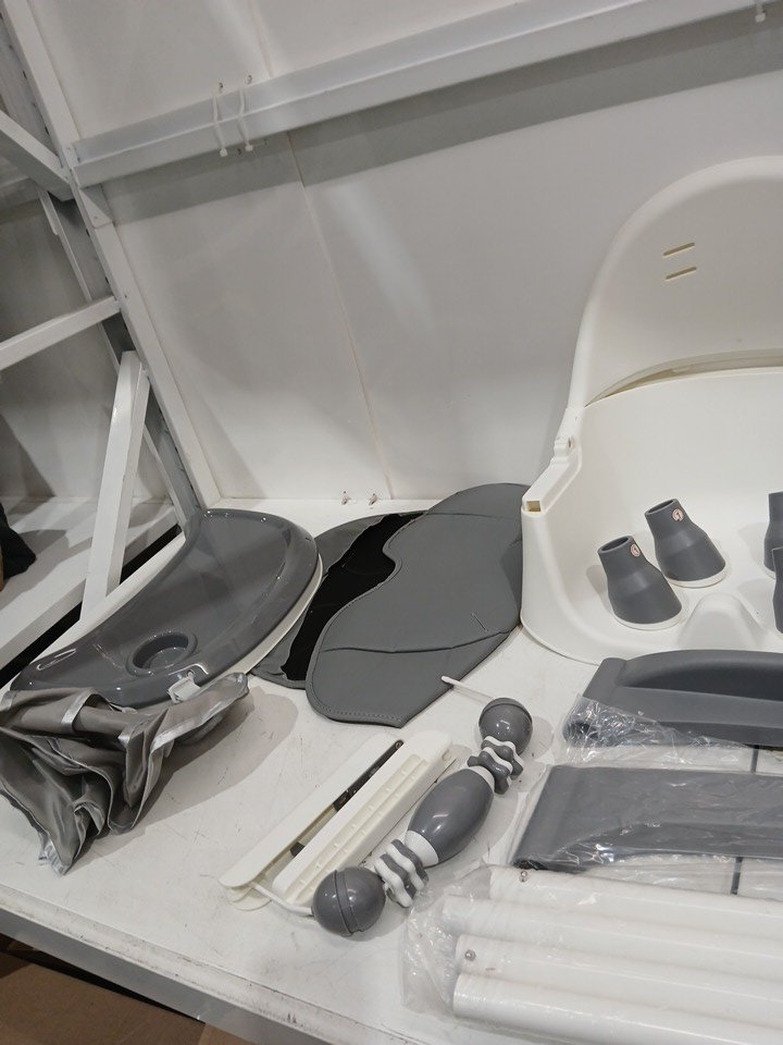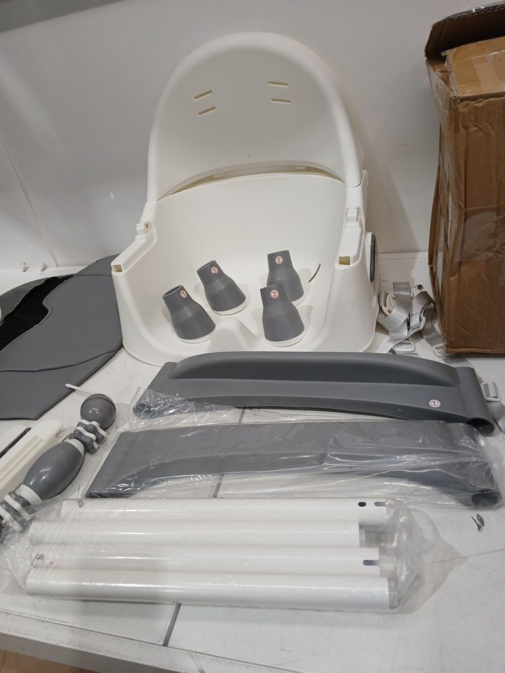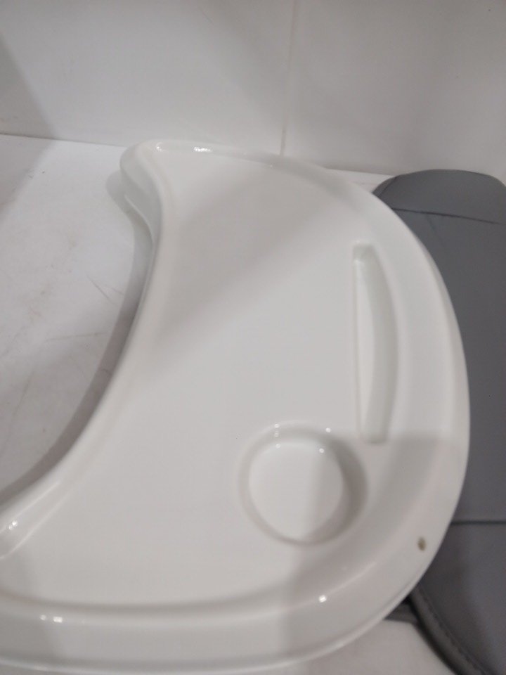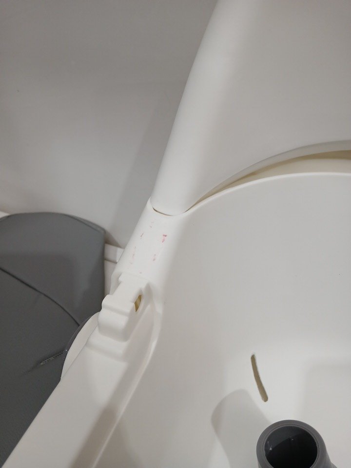 Has some red markings on the seat and some scuffing on the surface. Some of the stickers peeled off.