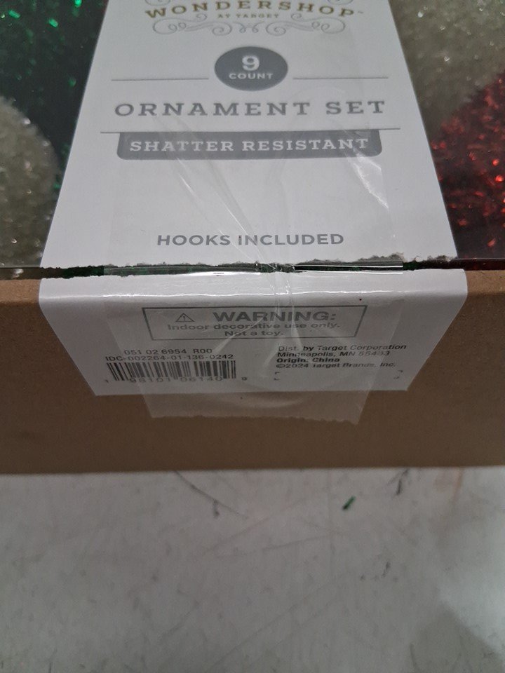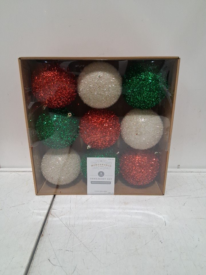 9PC WONDERSHOP Tinsel Ball Christmas Tree Ornament Set - Red/Green/White
