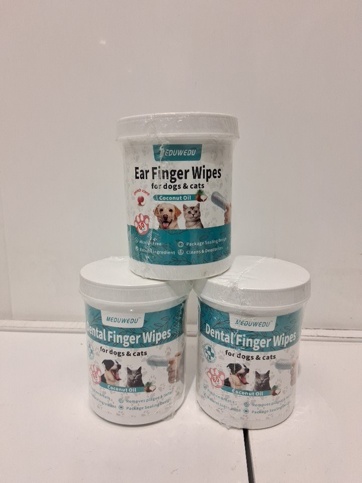 3(60pk) meduwedu pet ear finger wipes with coconut oil - Regular Size - PEACH scent - (120 wipes total)