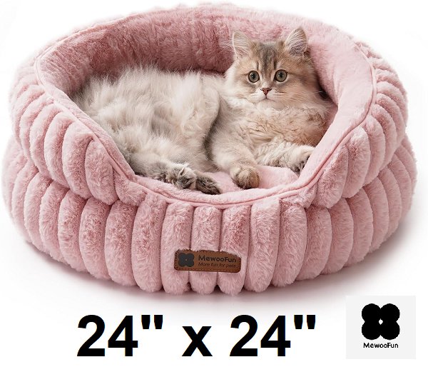 mewoofun round washable plush pet bed - 24" x 24" - pink - (model:wp229)