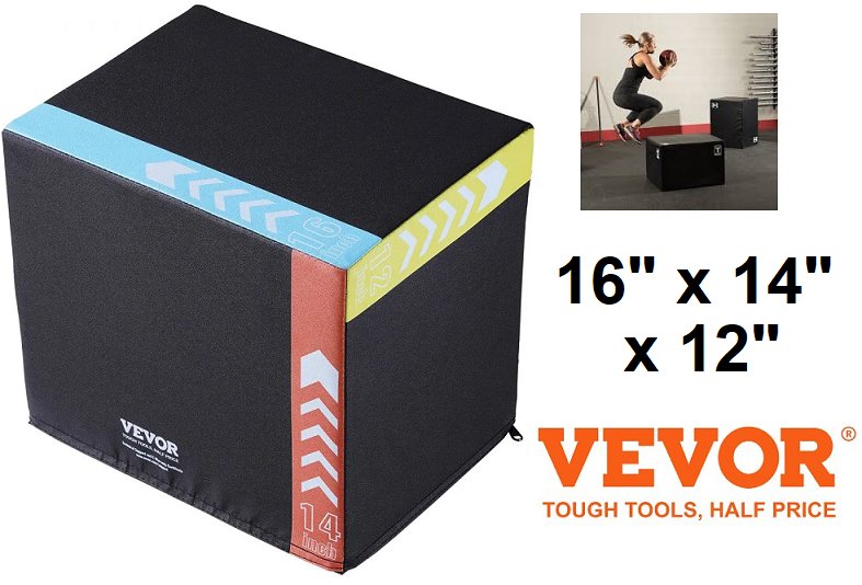 VEVOR 3 in 1 Plyometric Jump Box Cotton Plyo Box, Platform & Jumping Agility Box - 16" x 14" x 12" - black/multicolored (model: ss-z-16-14-12)