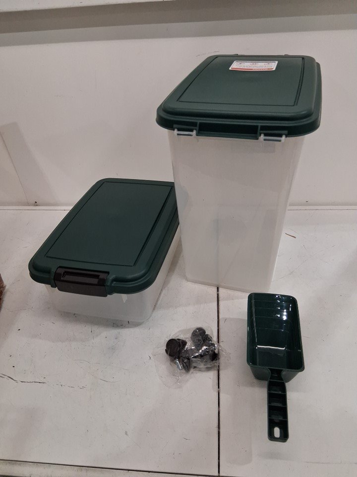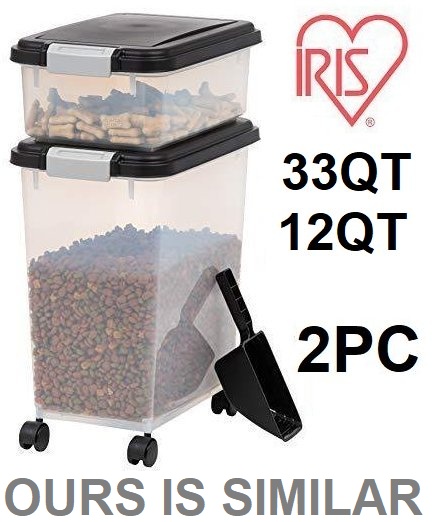 2PC IRIS AIRTIGHT PET FOOD STORAGE CONTAINER WITH SCOOP - 33QT & 12QT - green/CLEAR (MODEL: MP-8/mp-1)