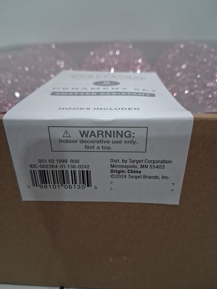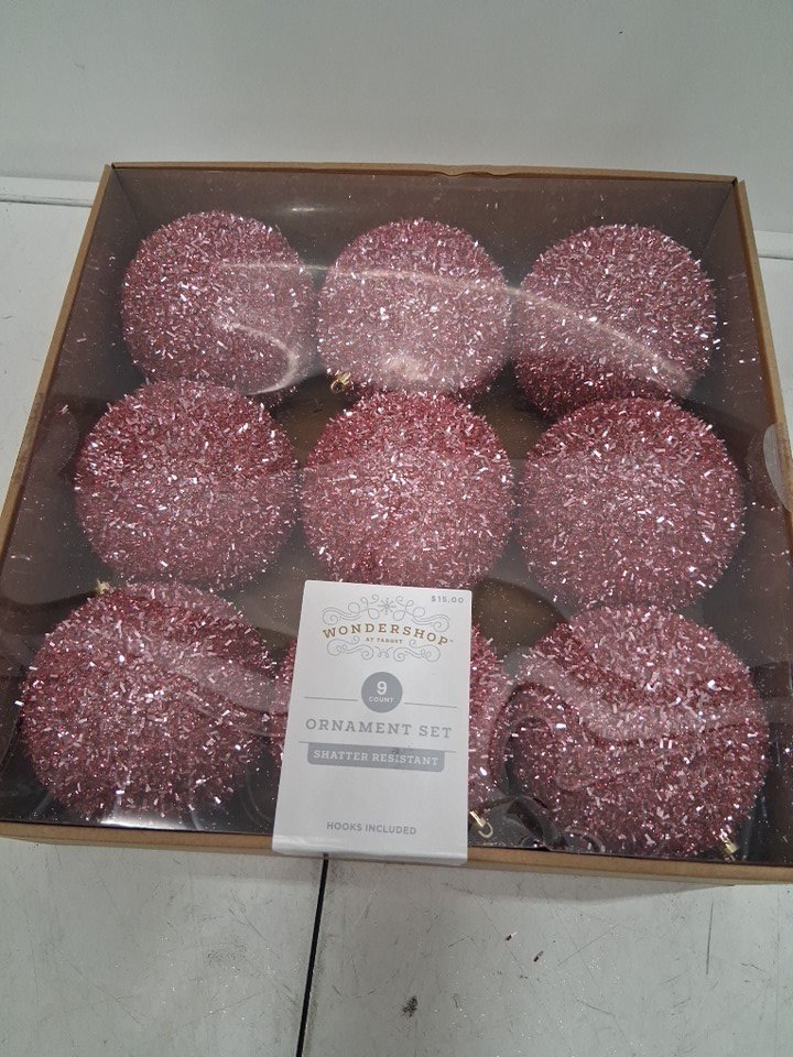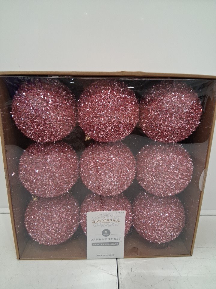 9PC WONDERSHOP Tinsel Ball Christmas Tree Ornament Set - PINK