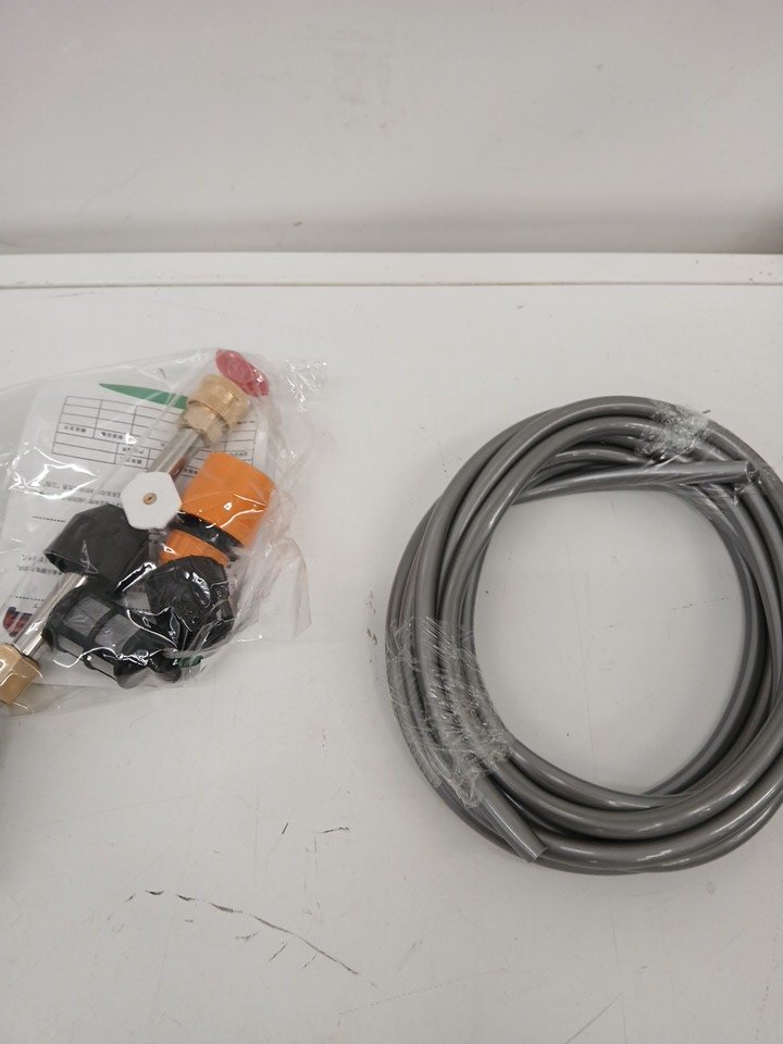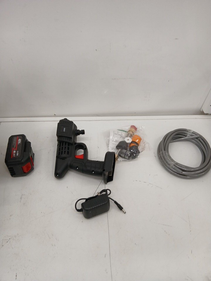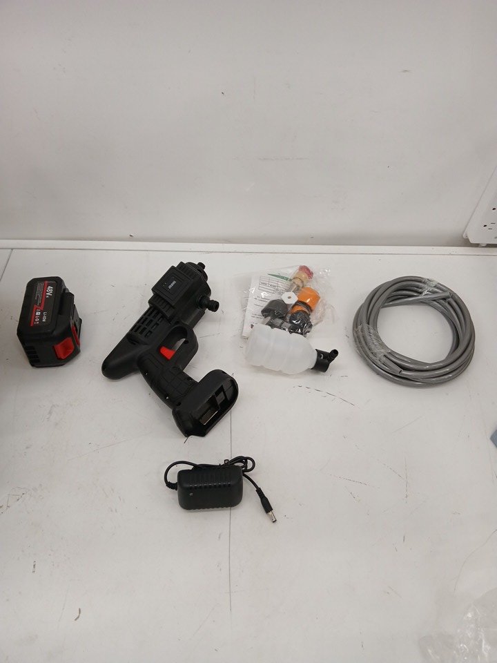 Please note alot of the accessories are missing. This package only includes the pressure washer, battery, 3 nozzles, bottle, hose, and charger.