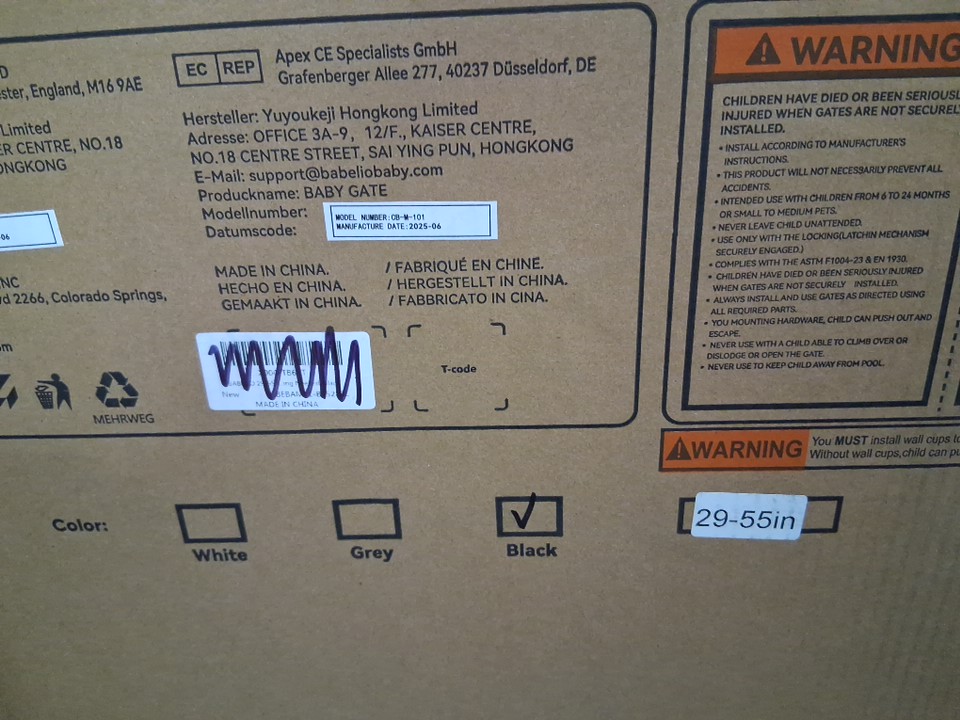 babelio extra tall pressure mounted metal child safety gate - 29" - 55" x 30" - black - (model: cb-m-101)