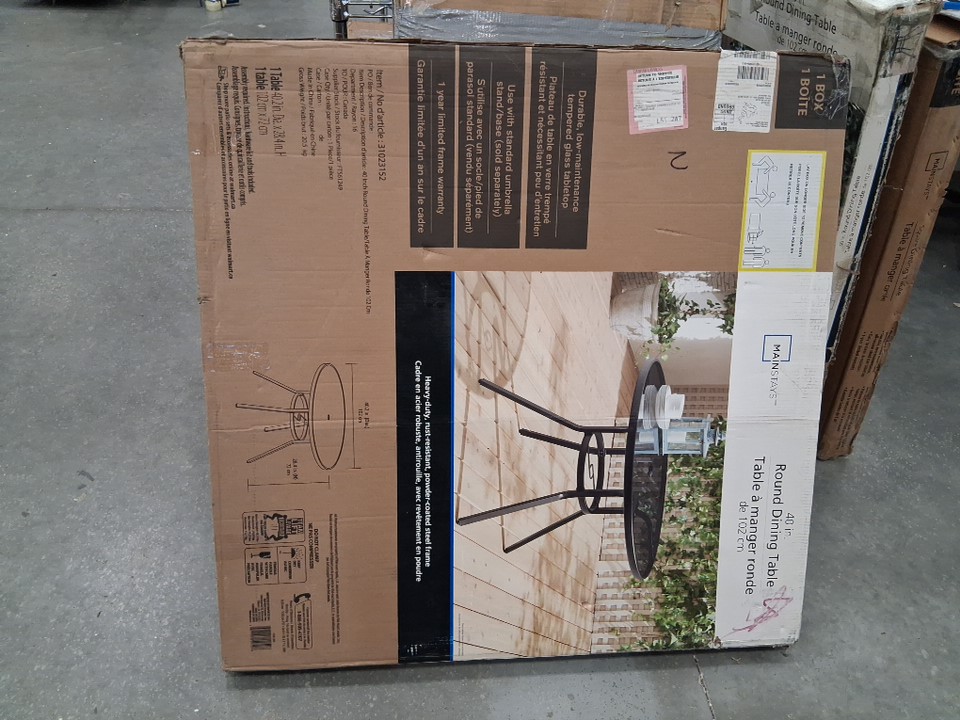 Outdoor Round Patio Dining Table with steel rim and base, glass top - 40" -black (Model: 31023152)