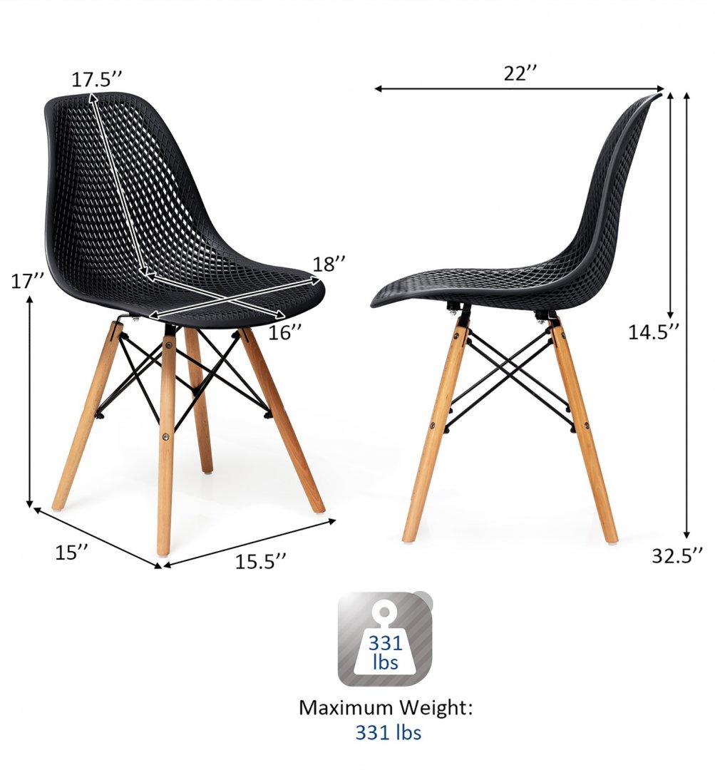 4PK Costway Modern Hollow Out Chairs - 33" x 15" x 15" - Black - (MODEL: JV10312-4)