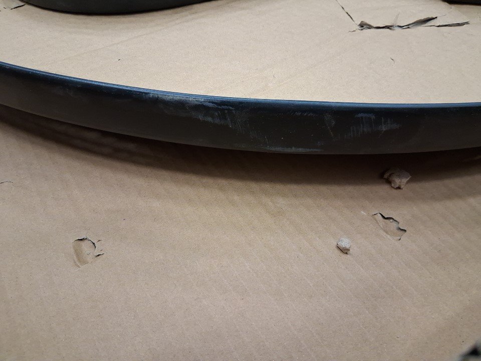 small dent and scratches on rim of table.