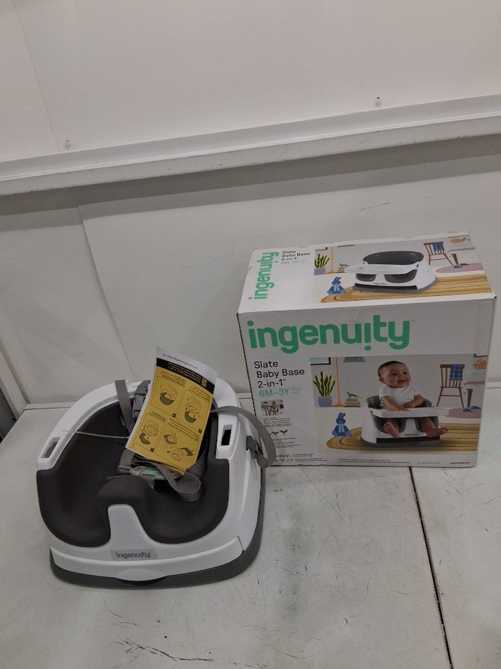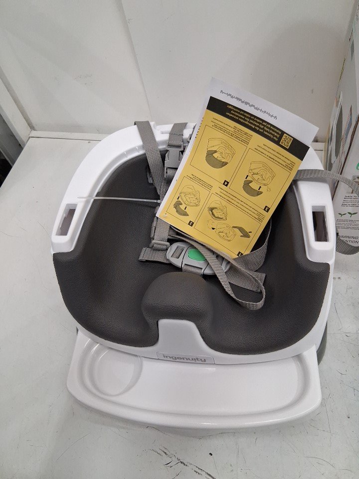 INGENUITY BABY BASE 2-IN-1 BOOSTER SEAT WITH FOOD & DRINK TRAY - 50LBS CAPACITY - WHITE/SLATE GREY (MODEL: 11576)