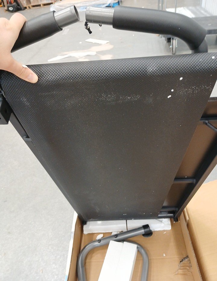 This item has some scratches especially on the inside of the handles where they connect from previous use. The tread has some white marks
