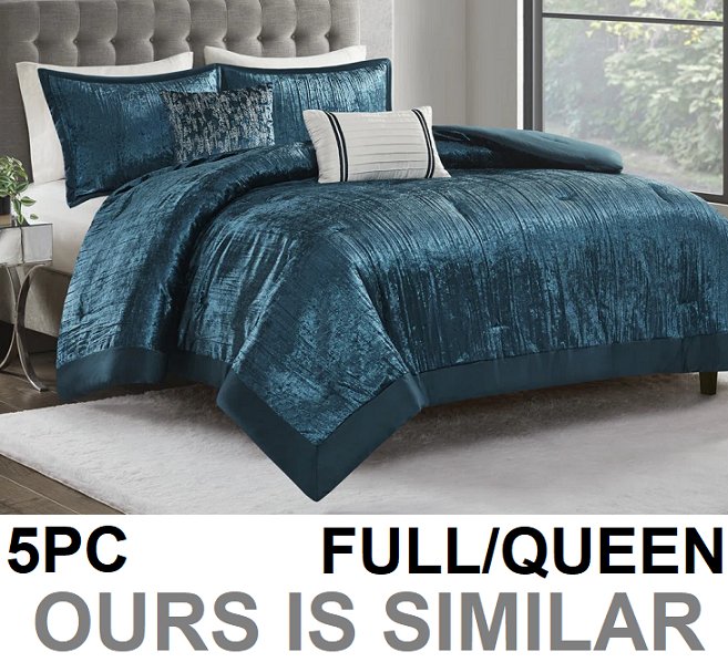 Lee 5 Piece Crinkle Velvet Comforter Set - FULL/ QUEEN - navy blue