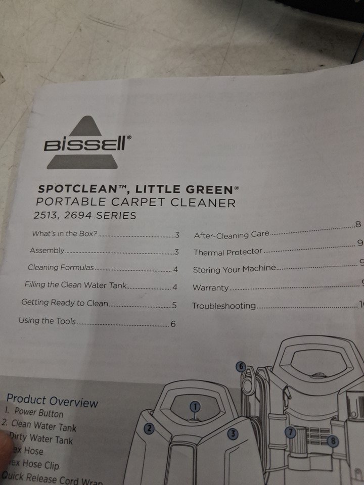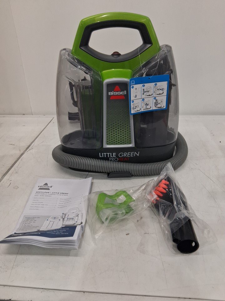 BISSELL LITTLE GREEN PROHEAT PORTABLE DEEP CLEANER/SPOT CLEANER WITH SELF-CLEANING HYDRORInSE TOOL - GREEN/GREY (MODEL: 2513B / 2513n)