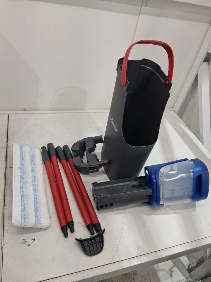 VILEDA H2PRO FLAT MOP AND BUCKET SET WITH MACHINE WASHABLE REUSABLE MICROFIBER MOP HEAD - 1.2l - grey /red/blue