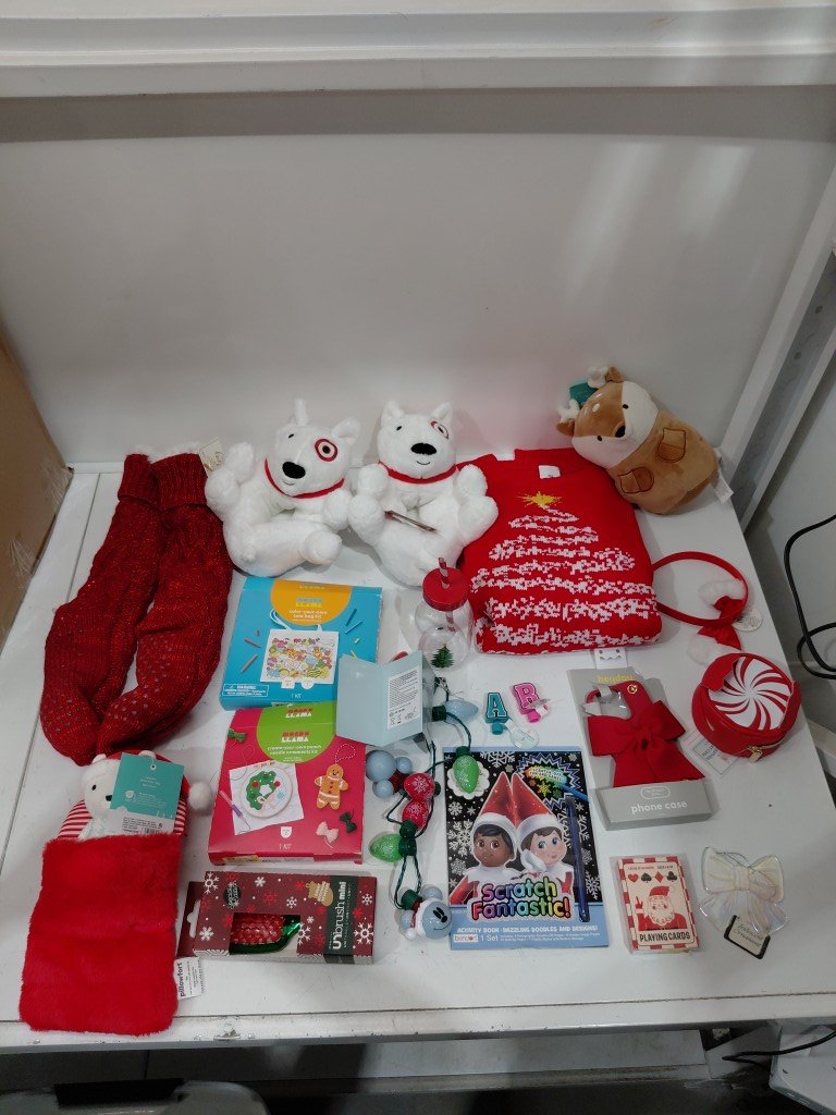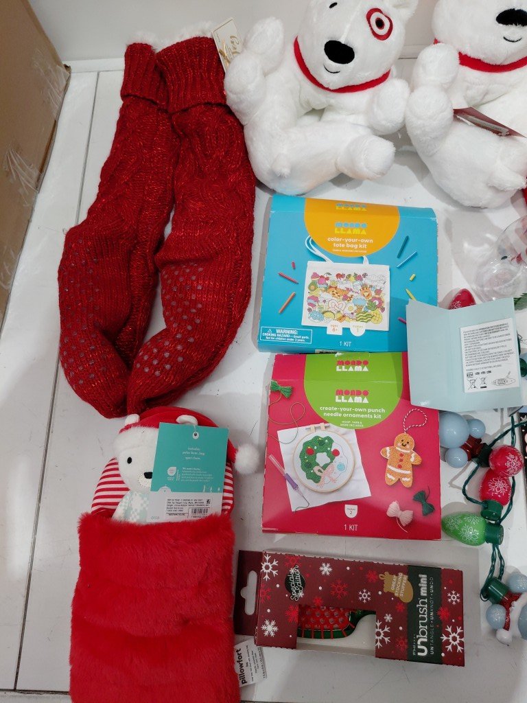 15+ Assorted kids Christmas stocking stuffers - ornament/sweater/stuffed animal/slippers & more
