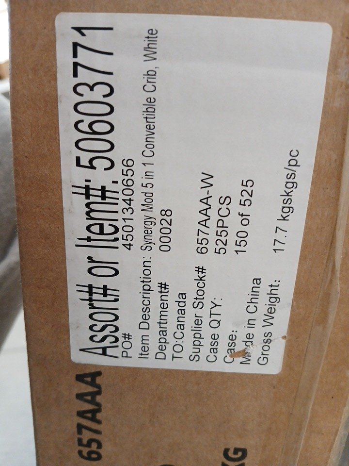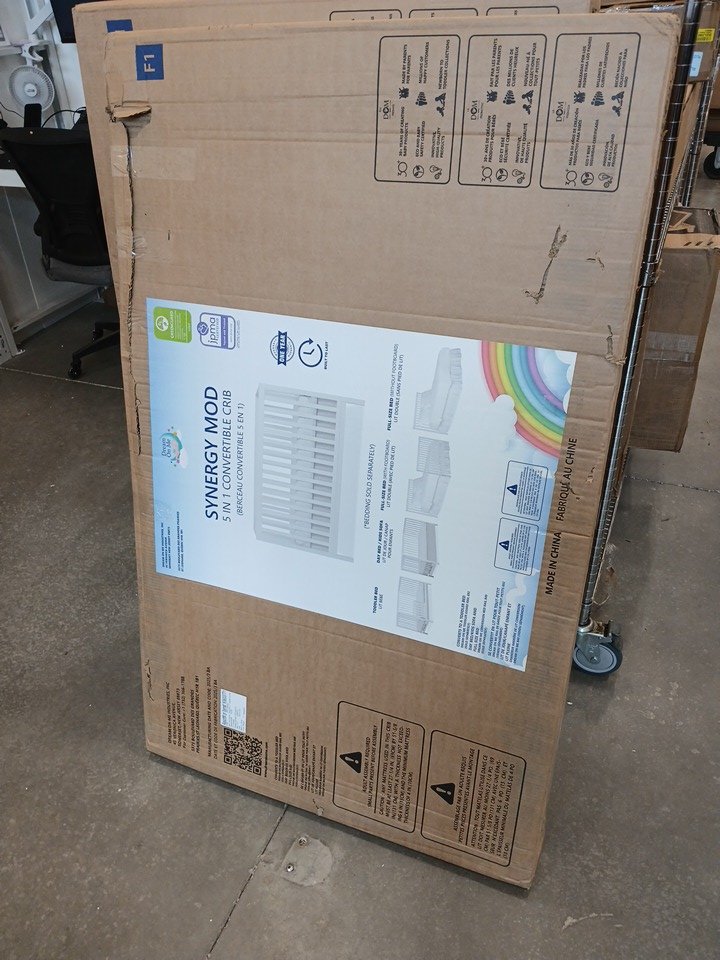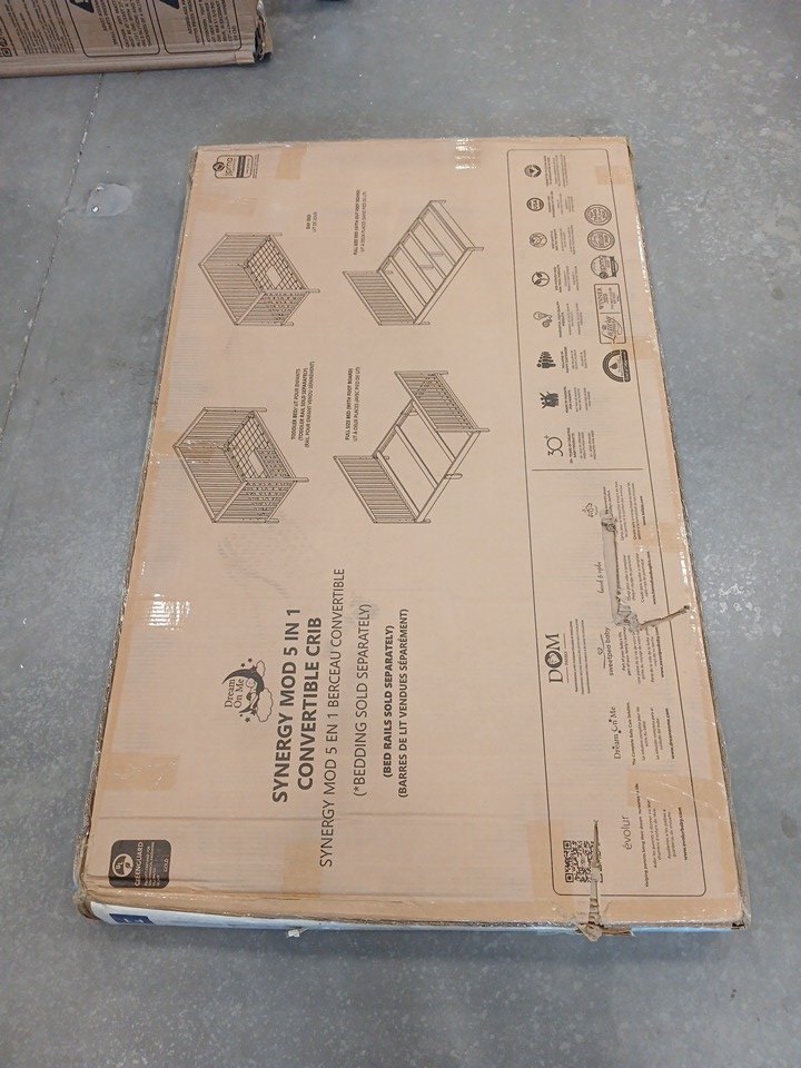 Dream On Me Synergy 5-In-1 Convertible Crib - NEW ZELAND PINE - 53" x 39" x 29" - White - (MODEL: 657AAA)