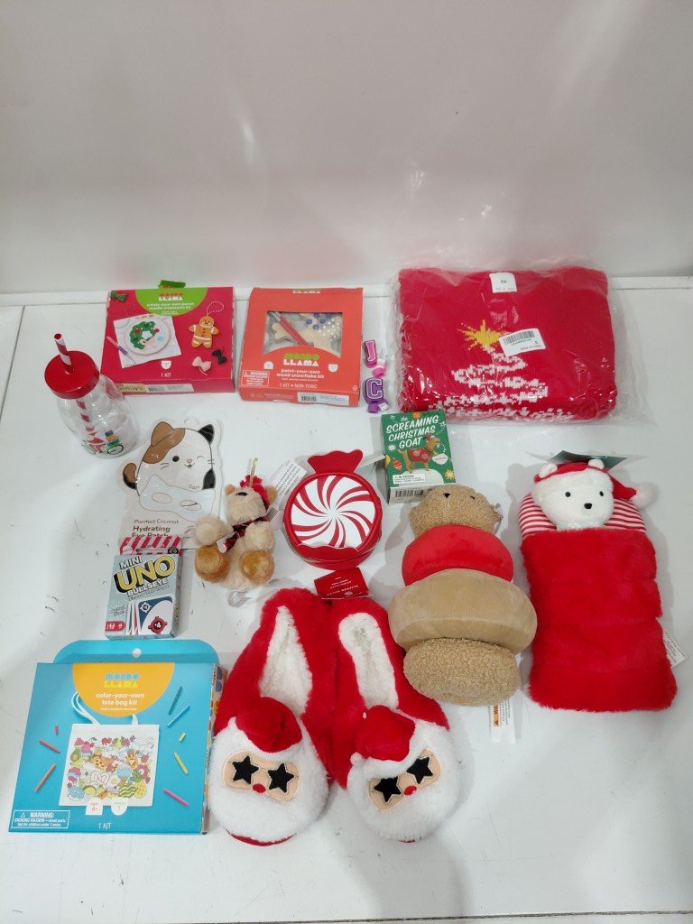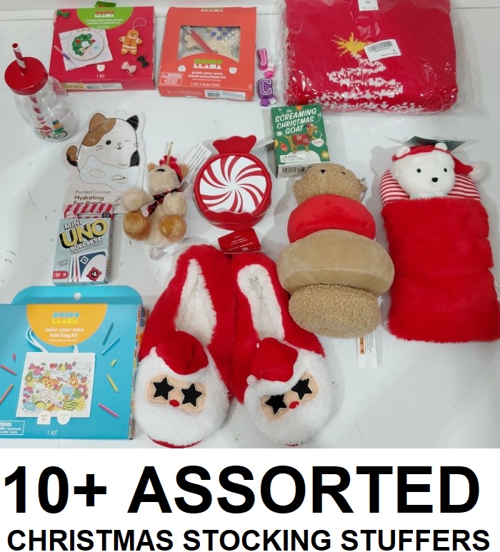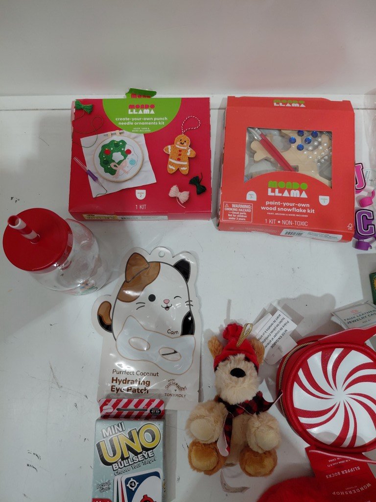 10+ ASSORTED KID'S stocking stuffers - slippers/stuffed animal/game/crafts & more