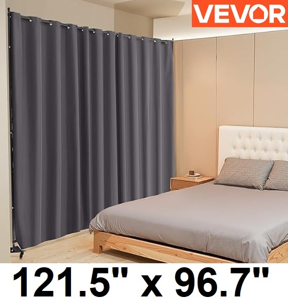 vevor room divider curtain with wheels - 121.5" x 96.7" - grey (model: CLDMFGSH03)