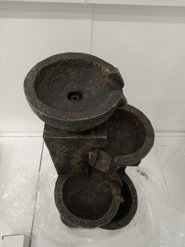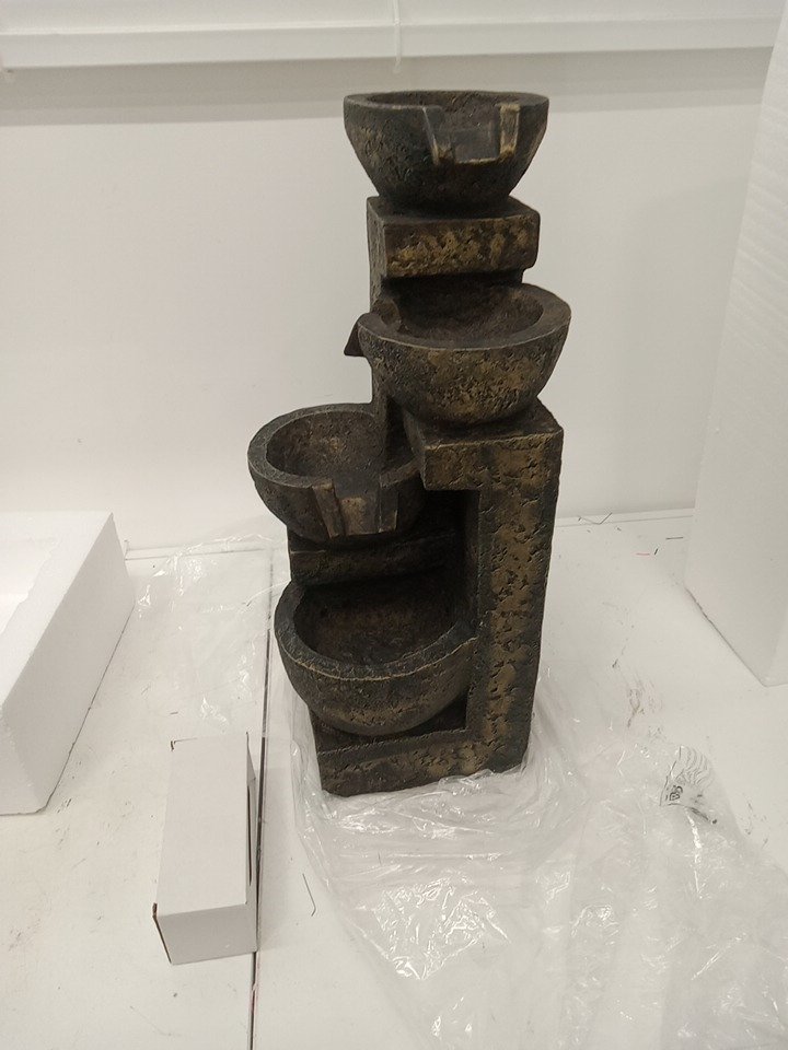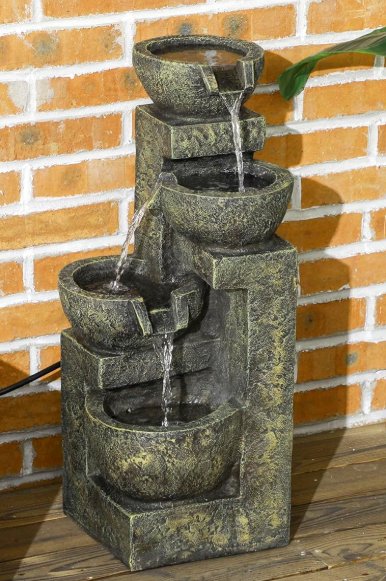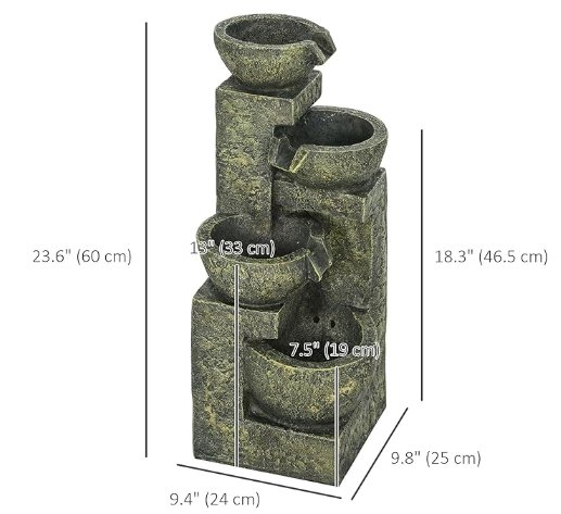 Outsunny Outdoor Fountain with 4-Tier Stacked Stone Look Bowls, Cascading Waterfall WITH Adjustable Flow - YELLOW, BLACK (MODEL: 844-657V80MX)