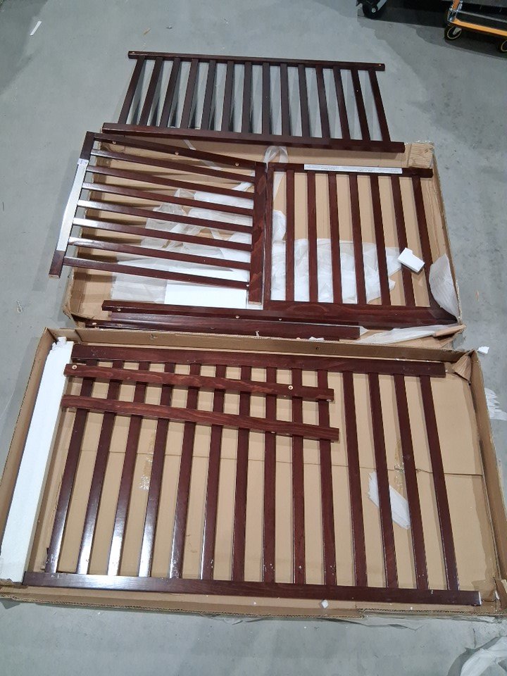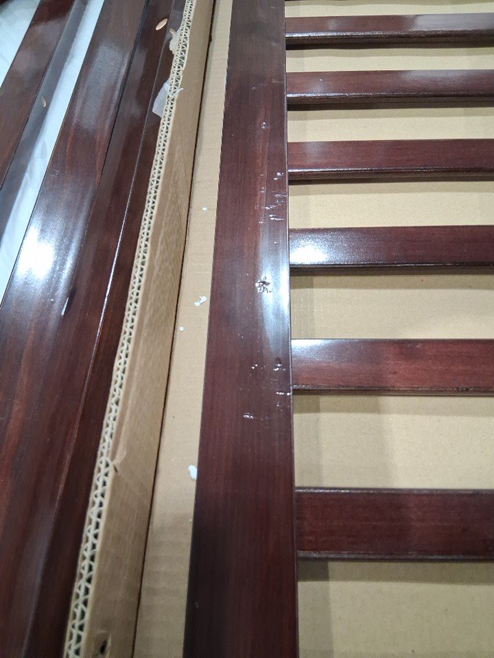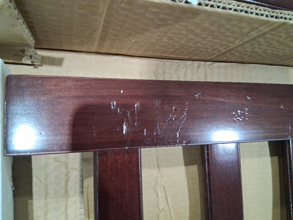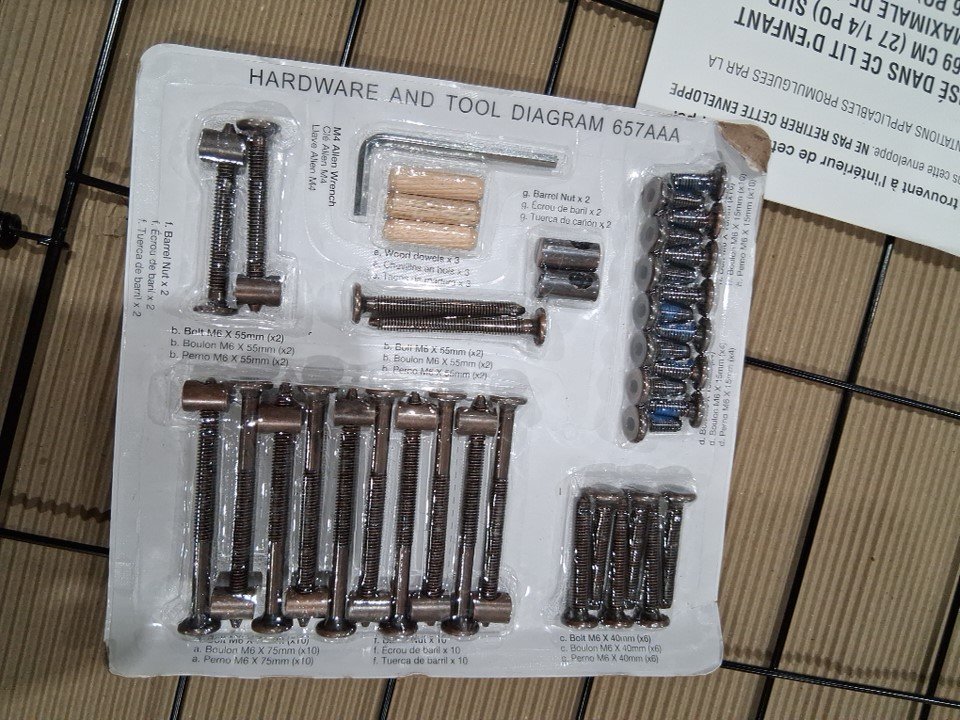 The item has some small dents could be from shipping. Please see photos. PLEASE NOTE THAT, the item didn't arrive with parts manual, we can't confirm the parts/hardware/accessories availability. Please see photos.