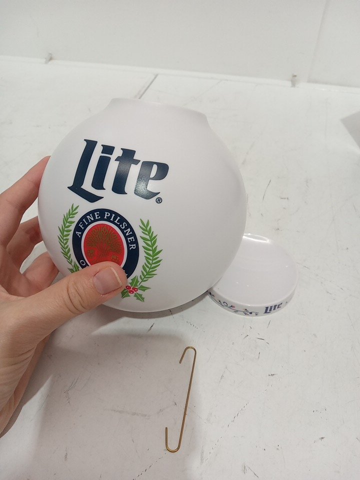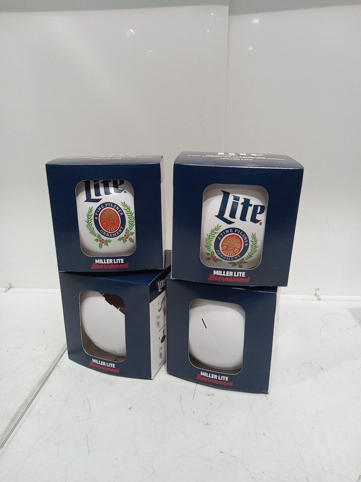 4pk MILLER LITE BEERNAMENT set - fillable beer ornament for 12 oz can - white