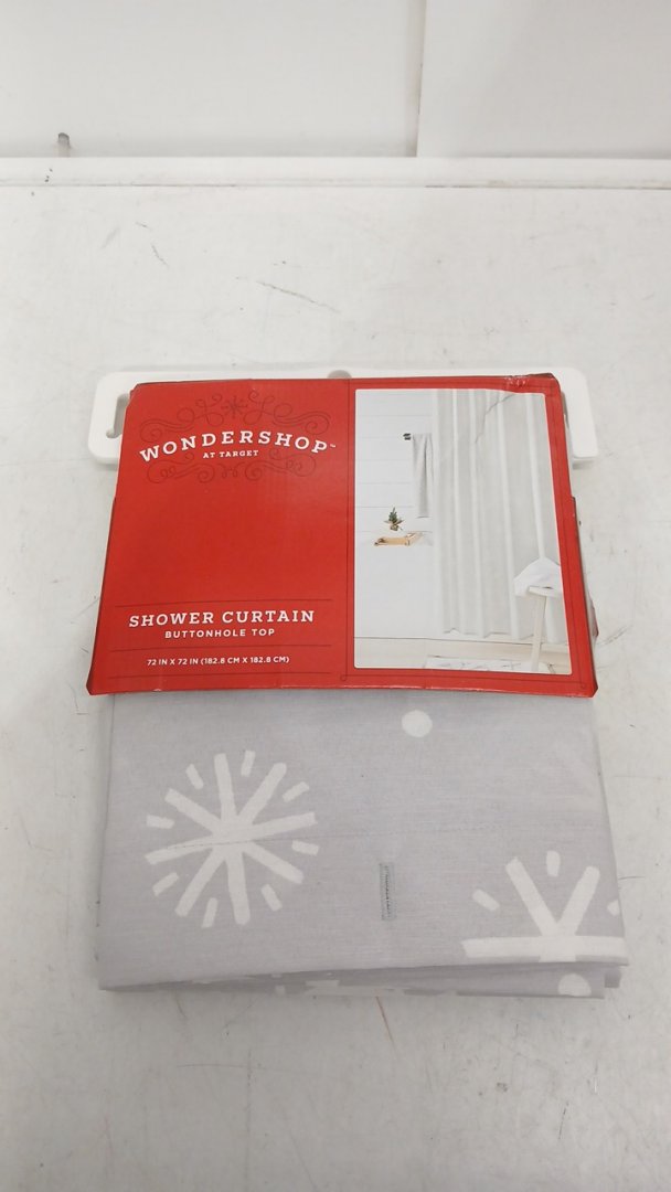 WONDERSHOP DECORATIVE HOLIDAY FABRIC SHOWER CURTAIN WITH BUTTONHOLE TOP - 72" X 72" - GREY SNOWFLAKE DESGIN