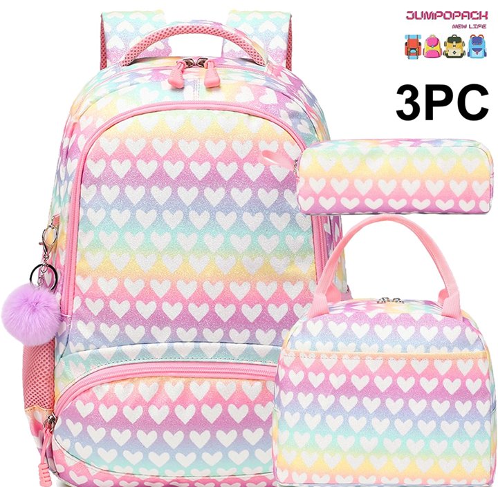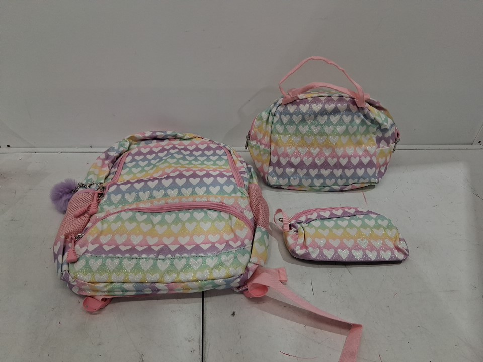 3pc jumpopach Backpack with lunch bag and pencil case - pink hearts