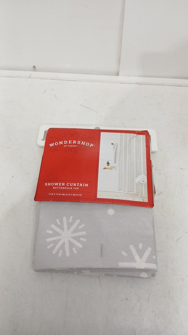 WONDERSHOP DECORATIVE HOLIDAY FABRIC SHOWER CURTAIN WITH BUTTONHOLE TOP - 72" X 72" - GREY SNOWFLAKE DESGIN