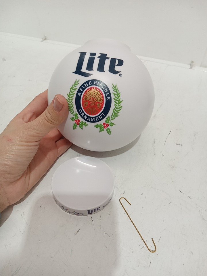 4pk MILLER LITE BEERNAMENT set - fillable beer ornament for 12 oz can - white