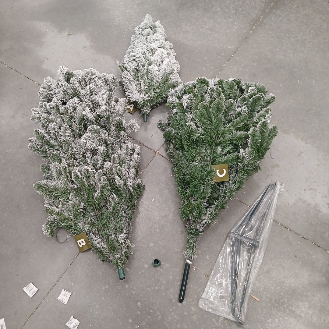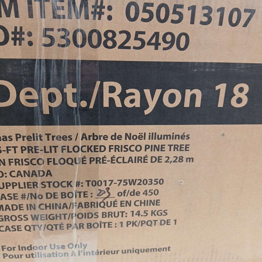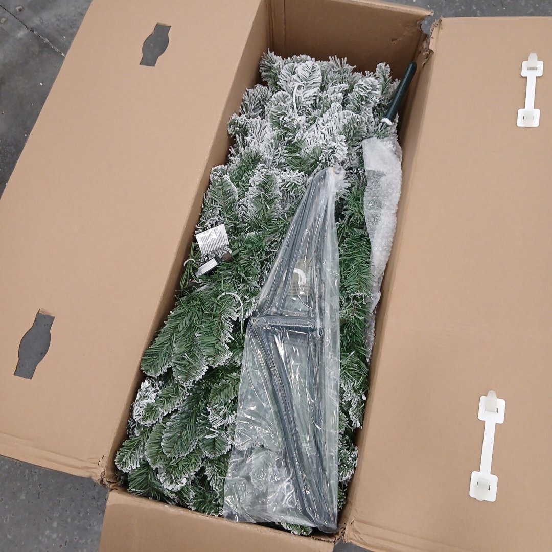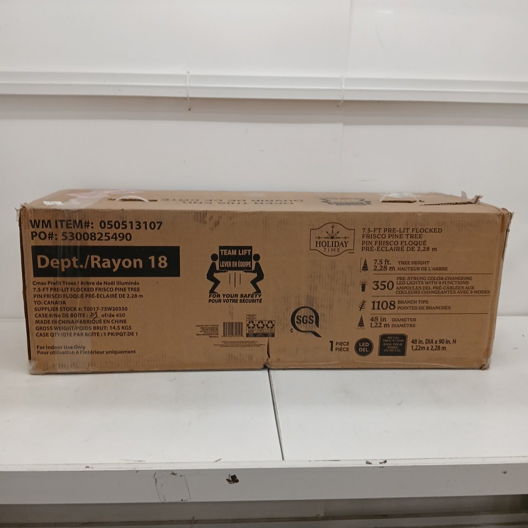 HOLIDAY TIME PRE-LIT SNOW FLOCKED FRISCO PINE CHRISTMAS TREE, HOLIDAY DECOR - 7.5 FT - GREEN, WHITE (MODEL: T0017-75W20350)