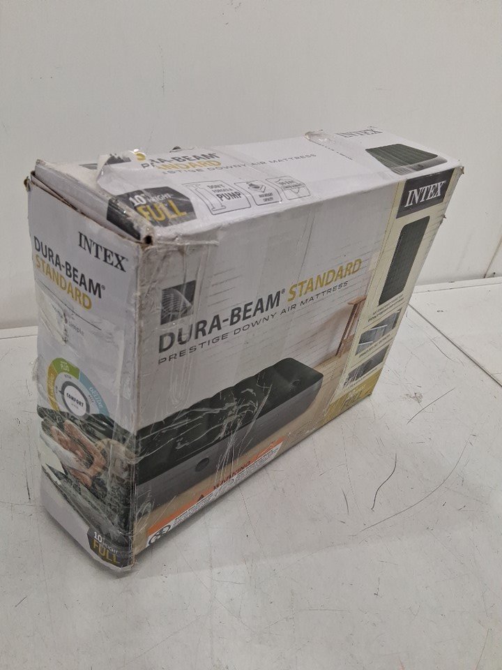 INTEX DURABEAM STANDARD DOWNY AIR MATTRESS WITH 300LB WEIGHT CAPACITY - 54" W x 75" L x 10" H FULL - GREEN/GREY (MODEL: 64108E)