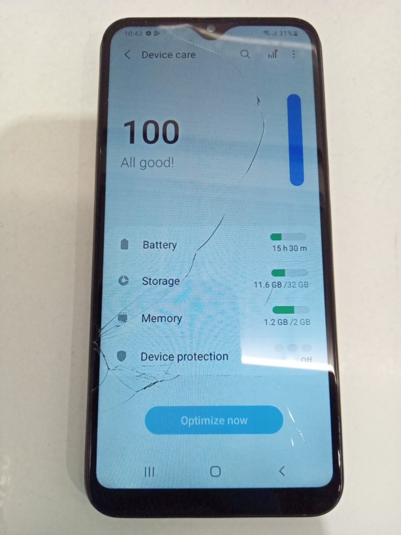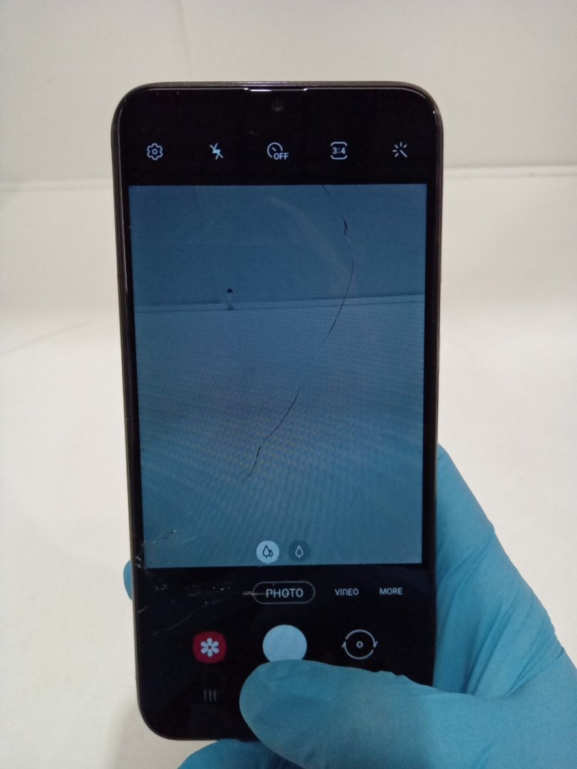 Light markings/scratches on the back from prior use. The display is also cracked from the left edge inwards. Please see photos.