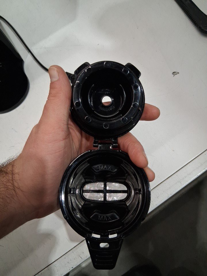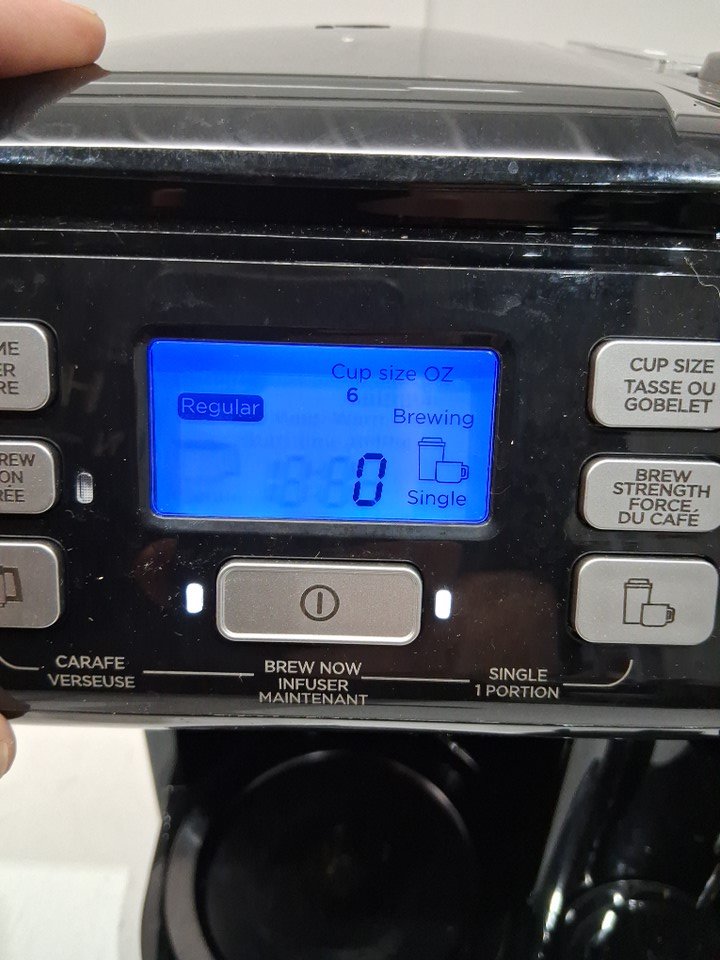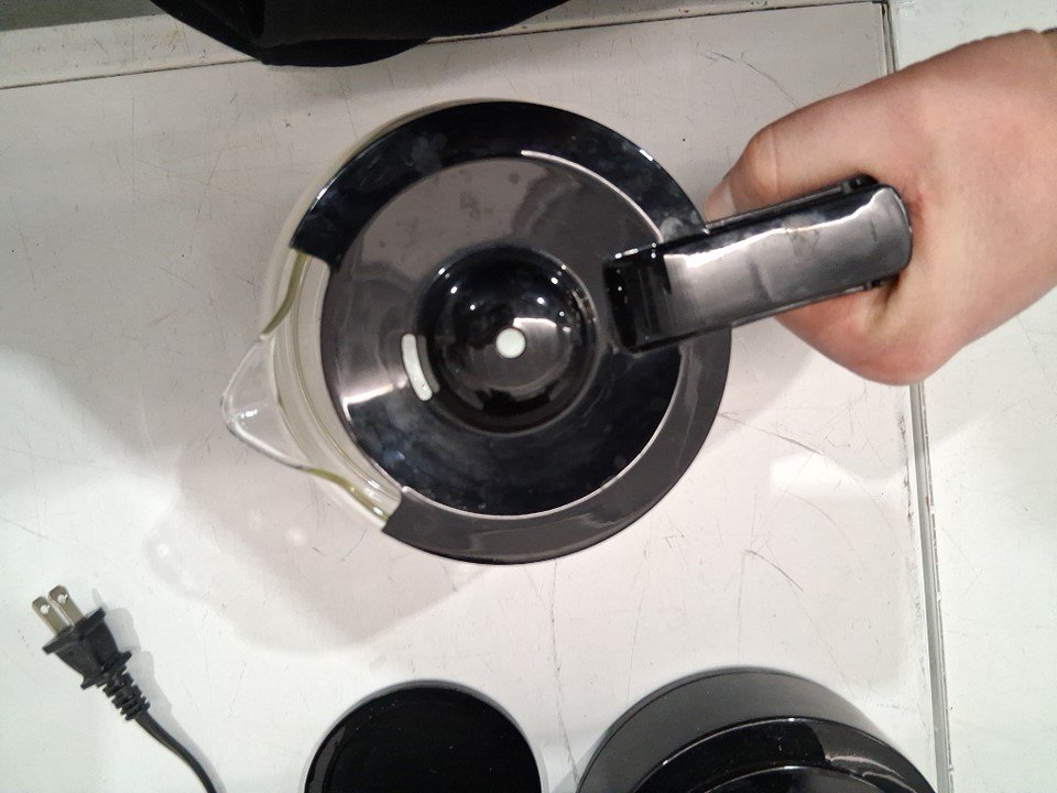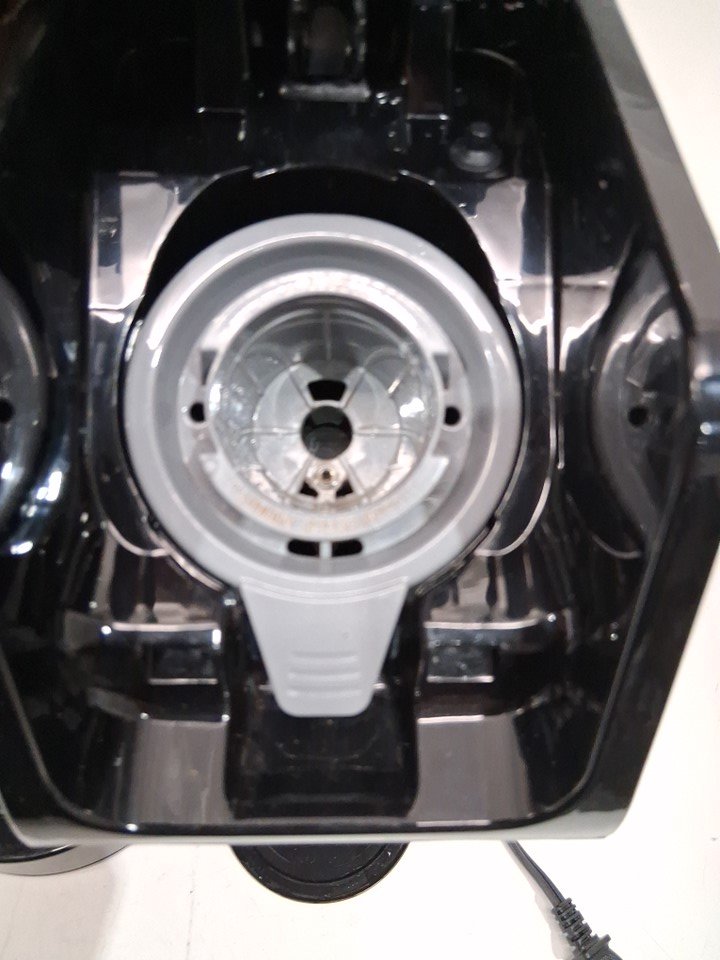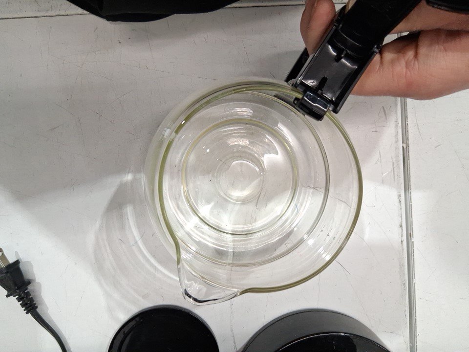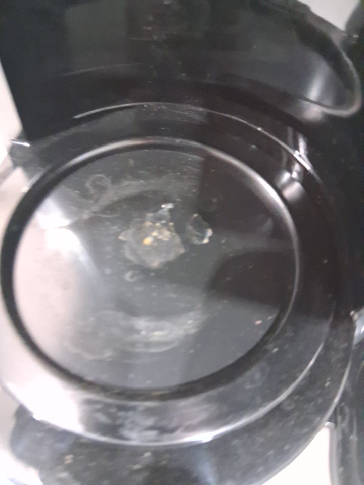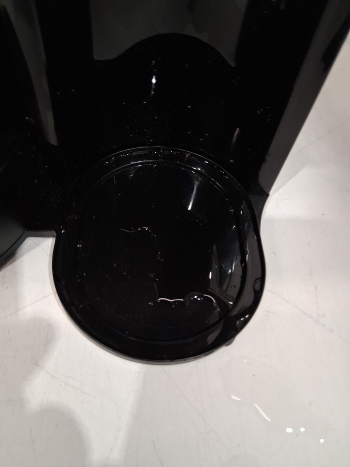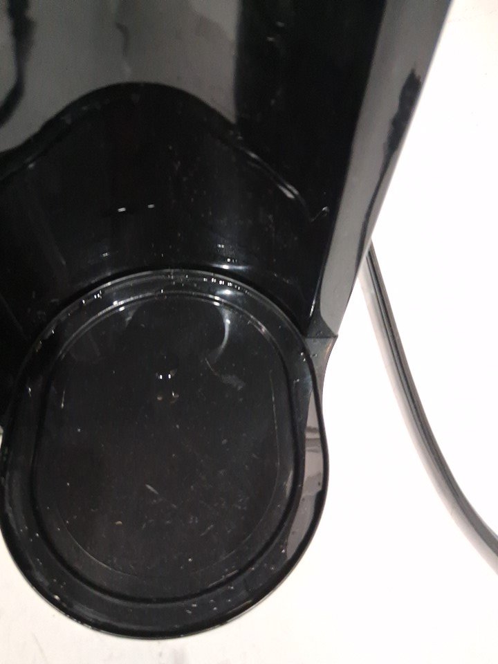 water marks / coffee marks on all sides of the item indicating prior use, water was found in the tank. item was tested for basic power only