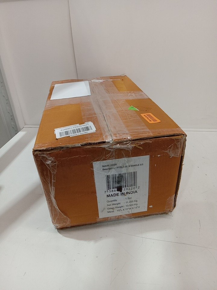 3pc Deco 79 Marble Box with Gold Handle set - 12"/10"/8" - grey marble/gold (MODEL: 29220)