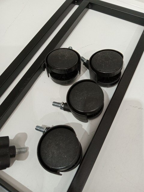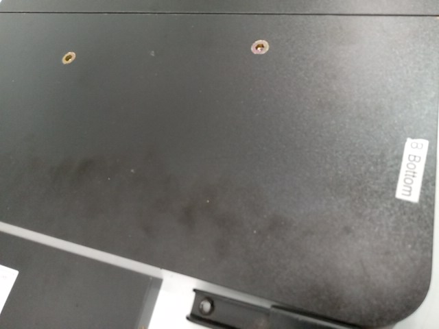 there is some marks on or throughout the desk. there is some whit staining marks on the edges of the desk. listers can not guarantee all hardware is there.