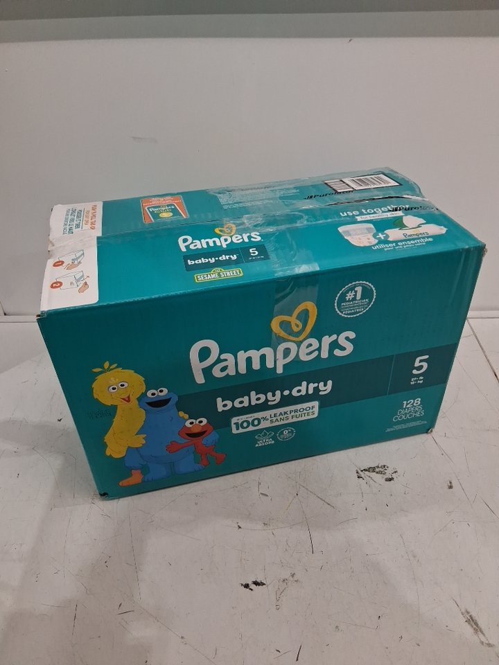 128PK PAMPERS BABY-DRY DISPOSABLE DIAPERS - SIZE 5 - 27+ LBS - SESAME STREET
