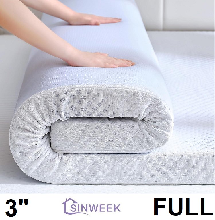 SINWEEK Gel Memory Foam Mattress Topper - 3" - FULL - white/purple