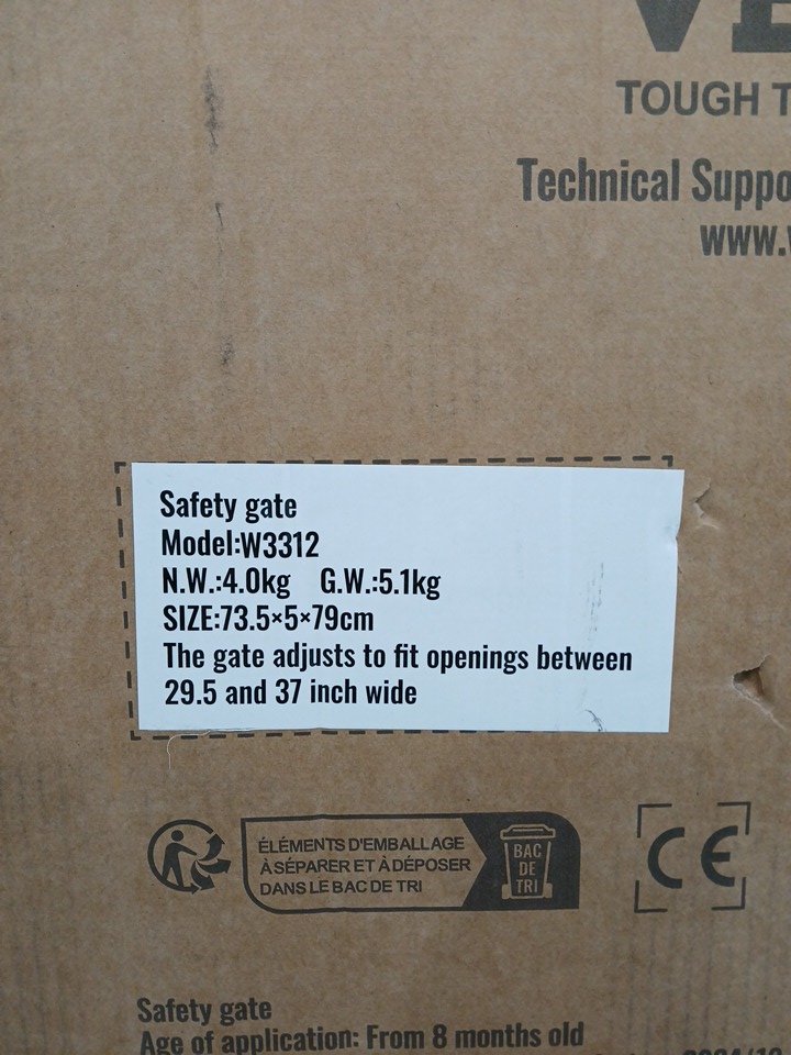 Vevor Easy Step Pet Safety Gate - 29.5"- 39"- white (model: w3312)