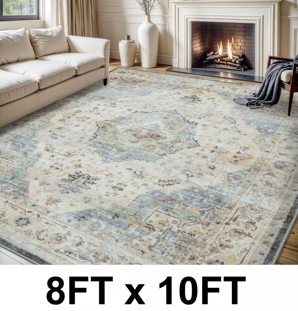montvoo vintage nonslip machine washable indoor area rug - 8ft x 10ft - lake - (model: ‎LAKE-8X10-MOONlight-CA)