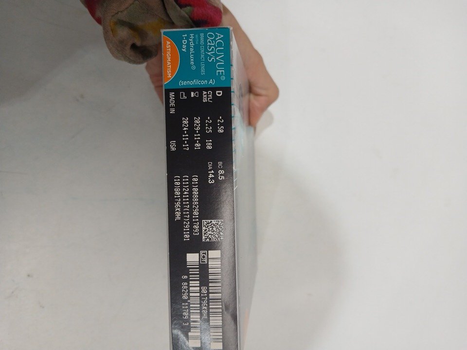 90PK Acuvue Oasys HydraLuxe Daily Contact Lenses with UV Blocking - d -2.50 - cyl/axis -2.25 -BC 8.5 - DIA 14.3 - ASTIGMATISM
