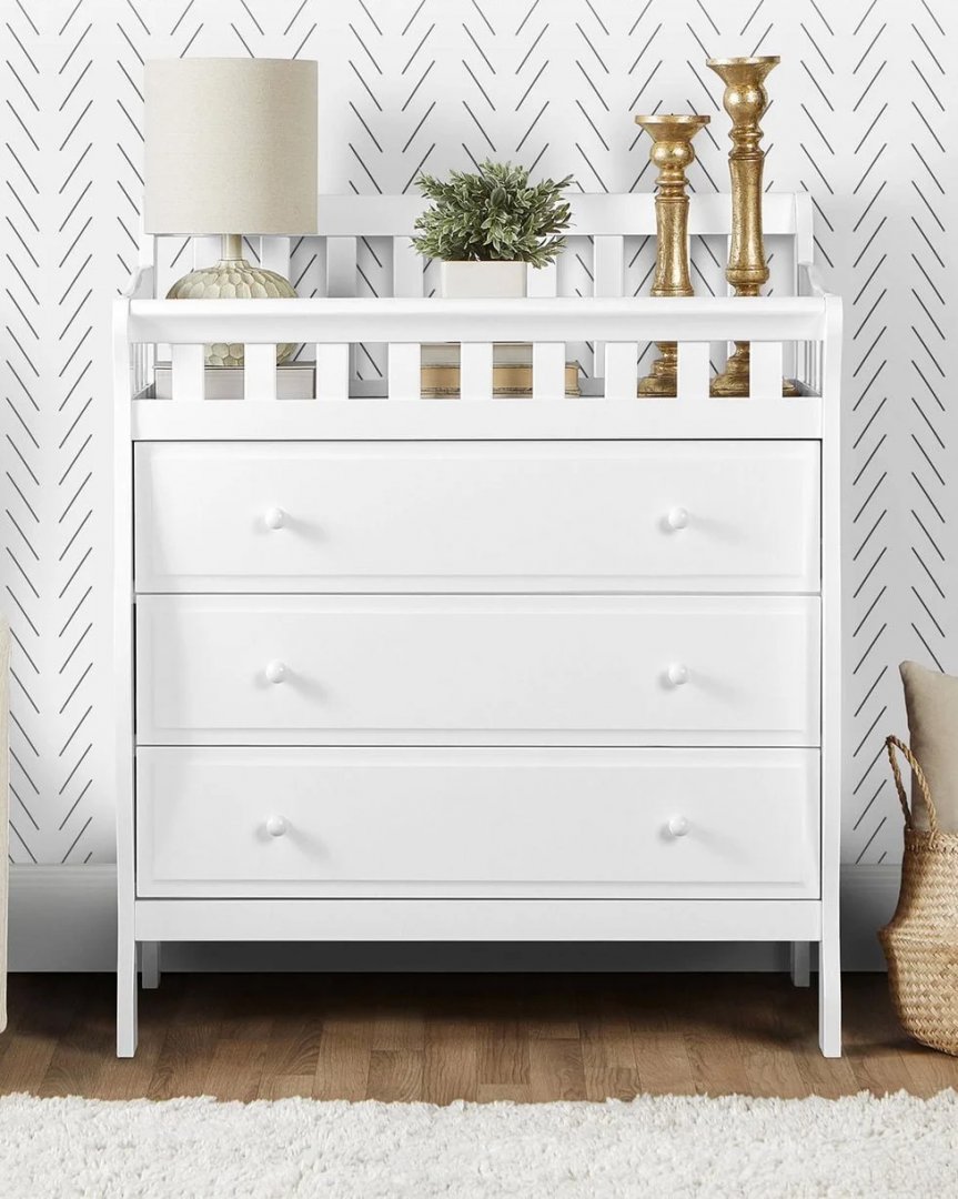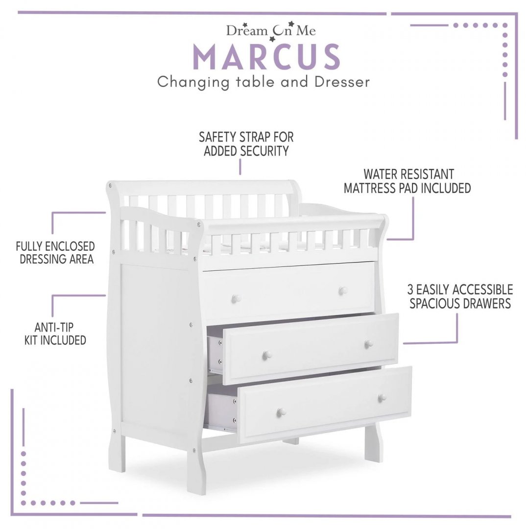 Dream On Me Marcus Changing Table and Dresser – 3-in-1 Convertible Nursery Storage Unit with Smooth Metal Glides, Safety Rail Enclosed Changing Top and Anti-Tip Design - White