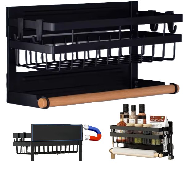 2PK Unbranded Hanging Kitchen spice rack and Paper Towel Holder - Black