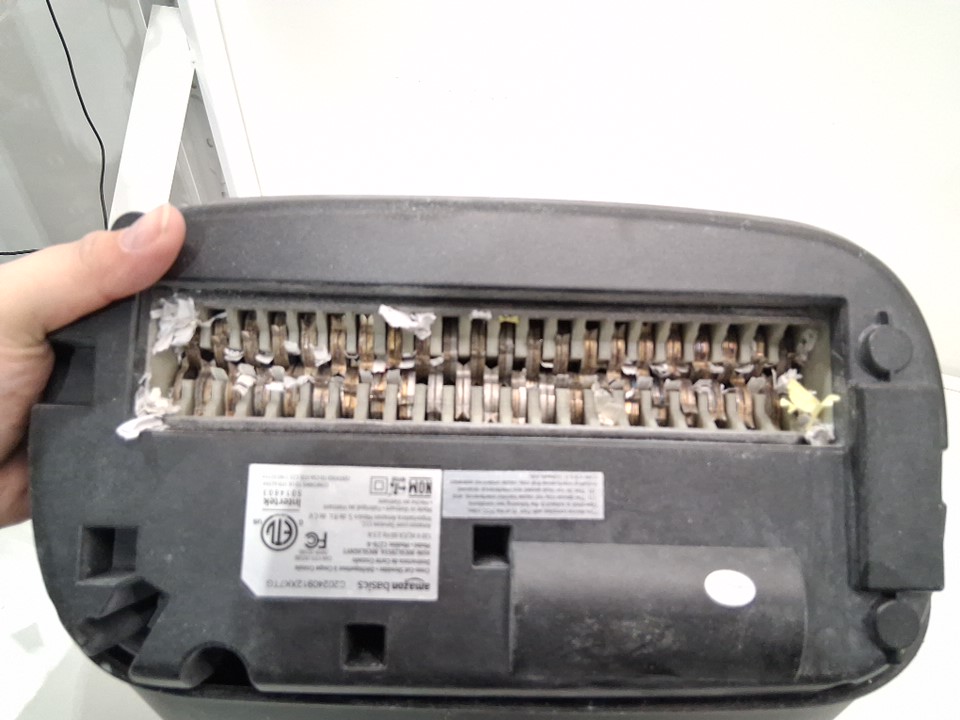 item has shreds of paper stuck inside the blade section and paper dust on the item - tested for power only